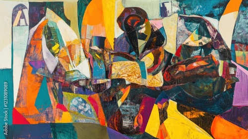 Abstract Composition in Vibrant Hues: A Collage of Shapes and Colors