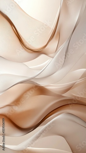 abstract composition of airy flowing translucent fabric forms in shades of mocha mousse brown beige cream, sense of movement and fluidity. subtle lines and gradients, elegant soothing aesthetic. .
