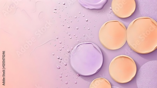 Abstract composition of pastel colors and circular shapes with droplets.