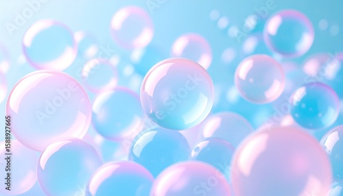 Abstract Composition of Transparent Bubbles in Shades of Pink and Blue