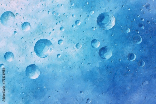 Abstract composition of various sized translucent bubbles floating within a watercolor gradient