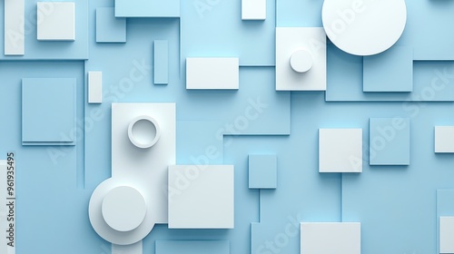 Abstract Composition of White Geometric Shapes on Blue Background