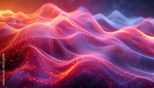 Abstract concept of fluid waves crashing against geometric shapes, collision of order and chaos, neon lighting