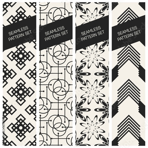 Abstract concept vector monochrome geometric pattern. Black and white minimal background. Creative illustration template. Seamless stylish texture. For wallpaper, surface, web design, textile, decor.