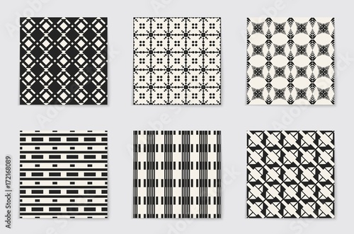 Abstract concept vector monochrome geometric pattern. Black and white minimal background. Creative illustration template. Seamless stylish texture. For wallpaper, surface, web design, textile, decor.