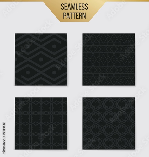 Abstract concept vector monochrome geometric pattern. Dark blue, gold minimal background. Creative illustration template. Seamless stylish texture. For wallpaper, surface, web design, textile, decor.