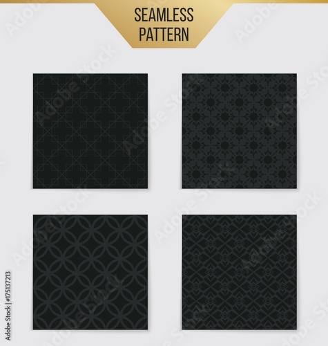 Abstract concept vector monochrome geometric pattern. Dark blue, gold minimal background. Creative illustration template. Seamless stylish texture. For wallpaper, surface, web design, textile, decor.