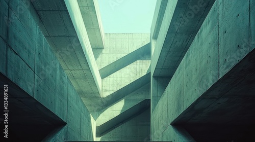 Abstract concrete architectural interior, daylighting, urban space, structural design