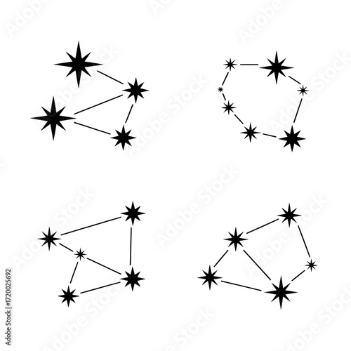 Abstract Constellation Line Art: Four Mystical Star Patterns on Black Background
