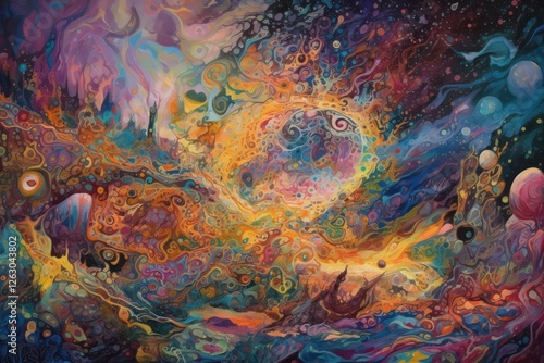 Abstract Cosmic Landscape Painting Swirling Nebula