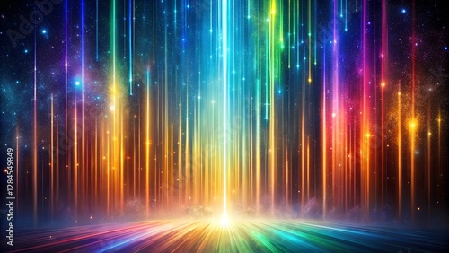 abstract Cosmic Light Trails with Vibrant Spectrum Colors and Starry Background