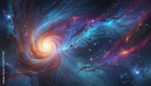 Abstract cosmic nebula, swirling blue with glittering stars , dark, texture