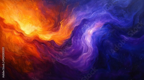 Abstract Cosmic Nebula with Fiery Orange and Icy Blue Hues