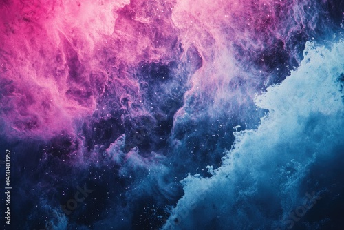 Abstract cosmic nebula with pink and blue hues, resembling celestial clouds and stars.