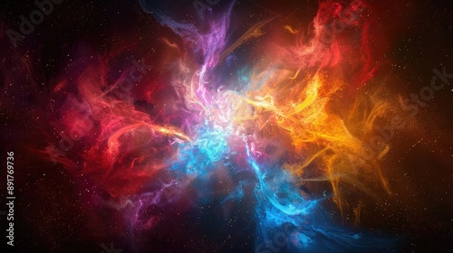 Abstract Cosmic Nebula with Vibrant Colors and Glittering Stars