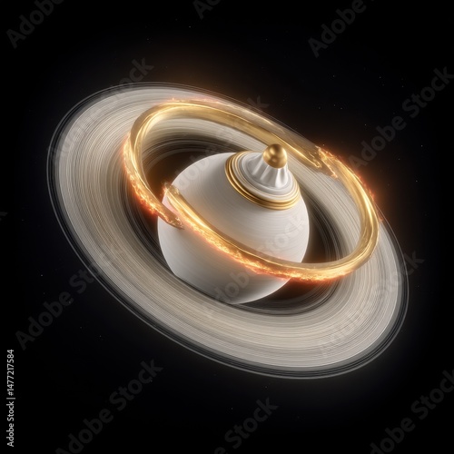 Abstract Cosmic Scene Featuring a White Orb Surrounded by Bright Rings Against a Deep Space Background with Starry Elements