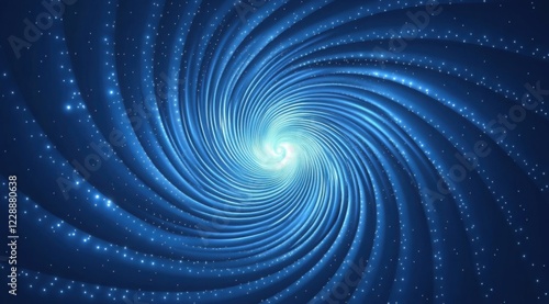 Abstract Cosmic Spiral: A mesmerizing journey into a swirling galaxy of blue lights and twinkling stars. A digital artwork creating a sense of wonder and mystery.