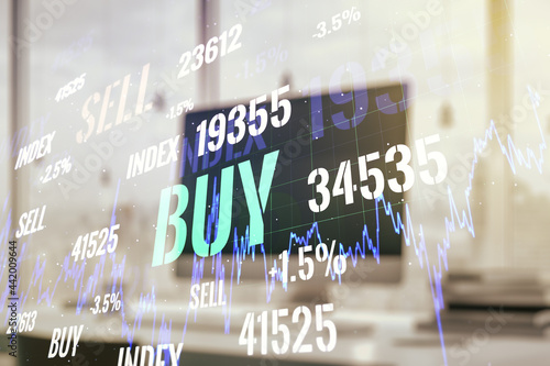 Abstract creative financial graph on modern laptop background, forex and investment concept. Multiexposure