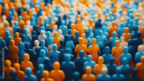 Abstract Crowd of Blue Orange and White Figures
