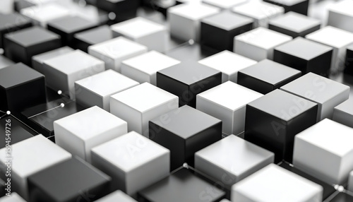 Abstract Cubes in Black and White with Connected Lines and Spheres