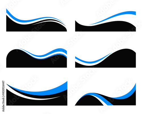 Abstract curved banner and footer template set with smooth wave lines in black, white, and blue colors, ideal for website headers, social media posts, cover layouts, and digital designs.