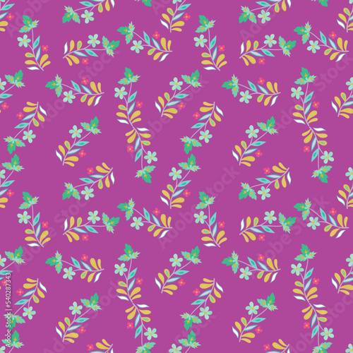 Abstract cute leaves and flower seamless pattern. Beautiful floral wallpaper. Cute plants endless backdrop.