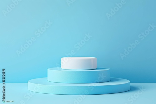 Abstract Cylindrical Podium on Blue Background