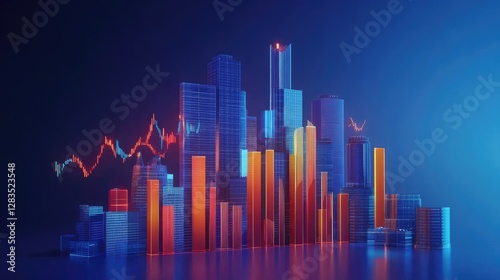 Abstract D illustration of data flow, showing market insights and trend analysis, glowing futuristic theme, no people