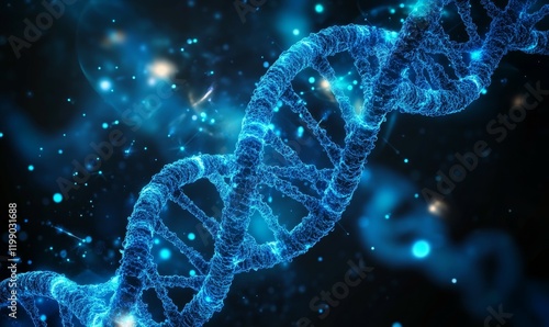 Abstract dark and blue digital background. Big data digital code, Data Communication and Transfer of DNA Biology. Futuristic information technology concept