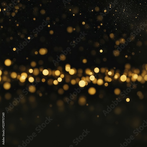 Abstract dark background with gold bokeh lights creating an illuminated and shimmering effect, AI generated