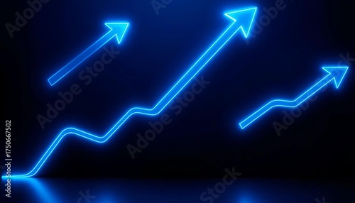 Abstract dark background with luminous blue upward arrows symbolizing growth, rise, background