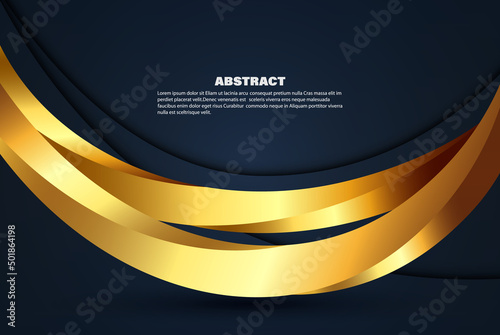 Abstract dark blue and gold wavy lines background. Beautiful abstract background.