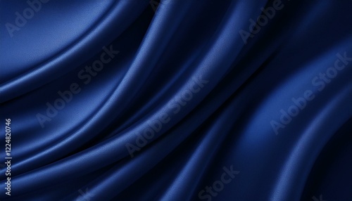 Abstract dark blue background. Silk satin. Navy blue color. Elegant background with space for design. Soft wavy folds.