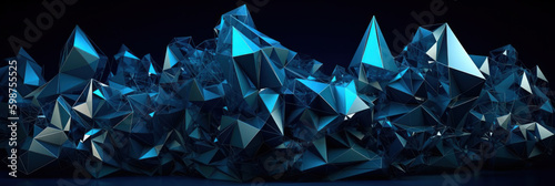 Abstract dark blue digital data social network communication background. Polygonal structure. AI generative illustration.