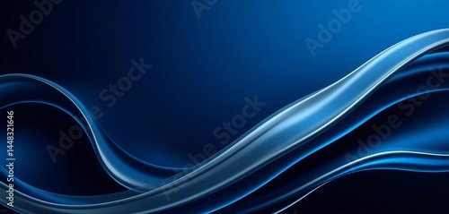 Abstract dark blue, silver, and gray fluid curves, dynamic flowing waves, horizontal banner, metallic, motion
