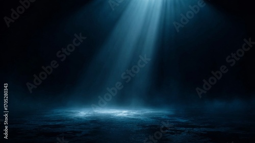 Abstract Dark Blue Stage Background with Spotlight and Fog
