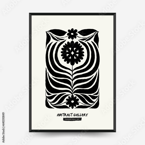 Abstract dark floral posters template. Modern trendy Matisse minimal style. Black and white colors. Hand drawn design for wallpaper, wall decor, print, postcard, cover, template, banner.