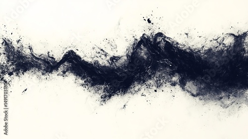 Abstract dark ink wash painting, dynamic wave-like form on white background, textured and expressive