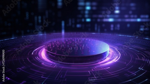 Abstract dark purple and blue technology background with digital tech circles - copy space available
