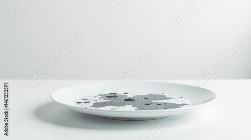 Abstract Dark Substance on a White Plate, Minimalist Still Life Photography