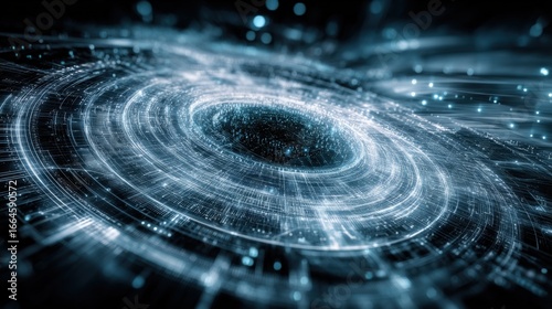 Abstract Data Stream Visualization with Glowing Blue Concentric Rings for Technology and Innovation Concepts