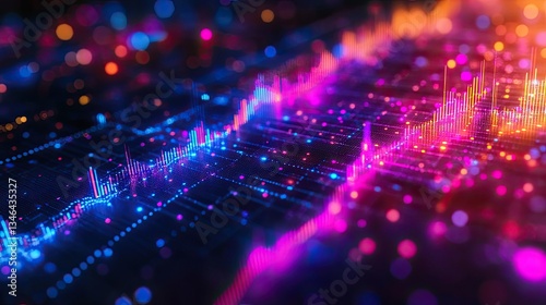 Abstract data visualization, glowing lines, bokeh background, digital technology concept