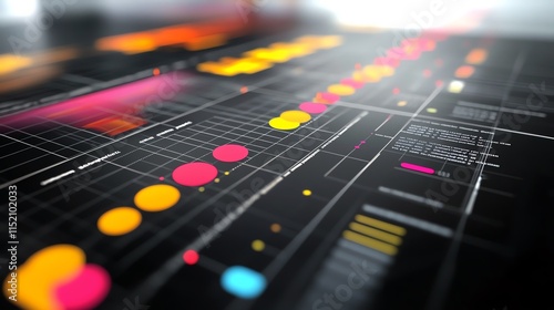 Abstract data visualization with colorful graphs and charts for digital analytics and insight representation.