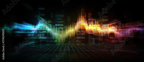 Abstract data visualization with digital graph and numbers