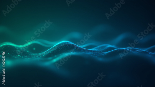 Abstract Data Wave: A mesmerizing display of interconnected particles undulates and flows, creating a stunning visual representation of data, technology and the digital age.