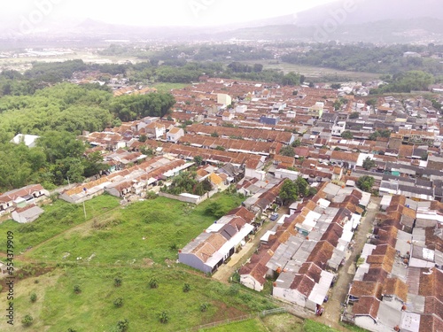 Abstract Defocused Blurred Background Aerial hill surrounded by residential areas in Cikancung - Indonesia. Not Focus