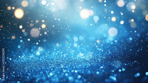 Abstract depiction of blue glitter and bokeh lights creates magic