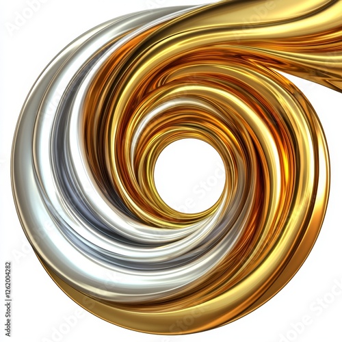 Abstract design featuring a swirling metallic pattern in gold and silver tones representing elegance and luxury in a captivating visual form
