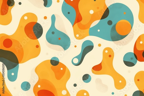 Abstract design featuring colorful organic shapes in orange and teal tones.