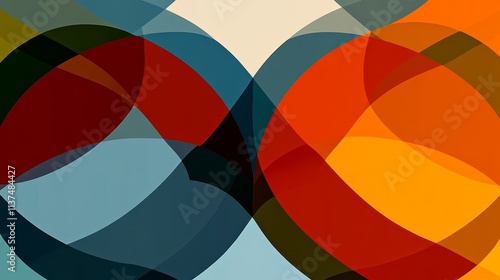 Abstract design featuring overlapping colorful shapes and gradients.